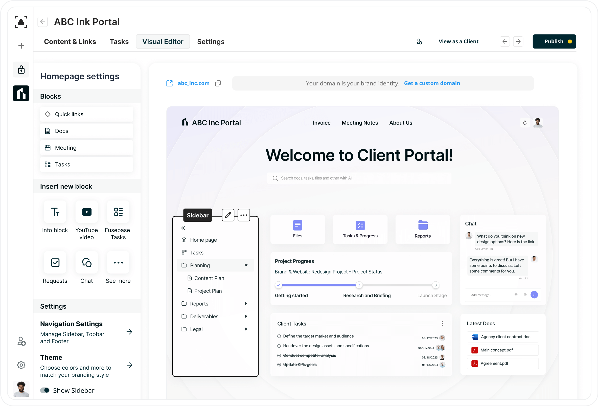FuseBase (formerly Nimbus) offers Client Portals — coding-free websites for businesses. This is your perfect tool for online collaboration with clients and professional product presentation.