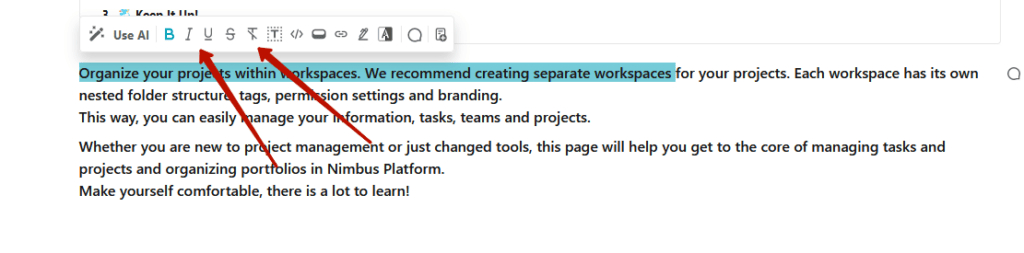 Open your workspace in FuseBase and create pages. You can write down your ideas and add different information such as documents, links, audio and video recordings.