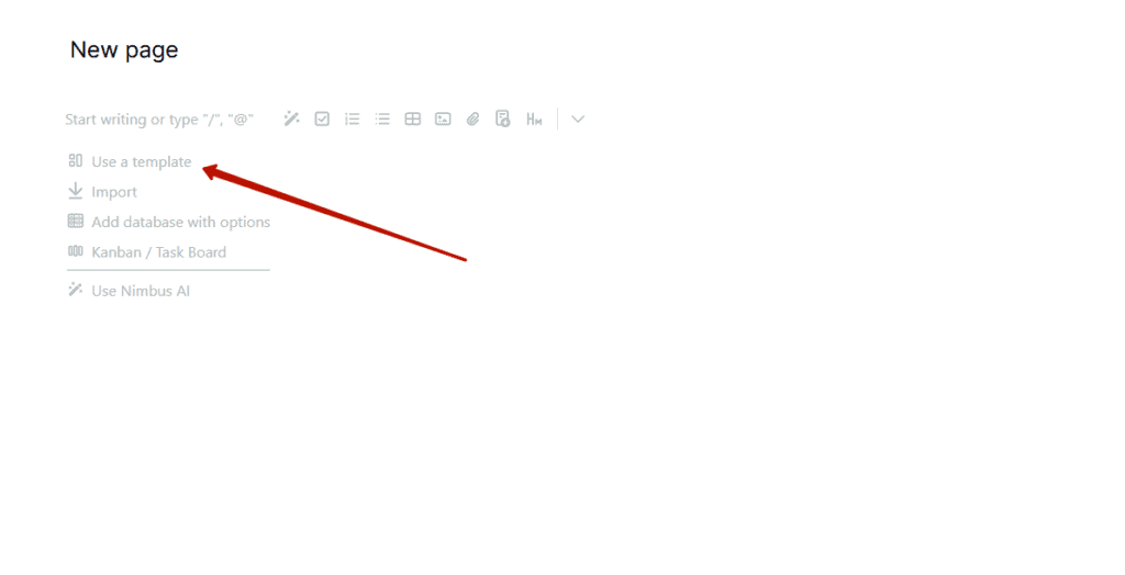 - Click the + in the Navigation bar and select New Page. You can immediately choose the workspace in which the page will be created.