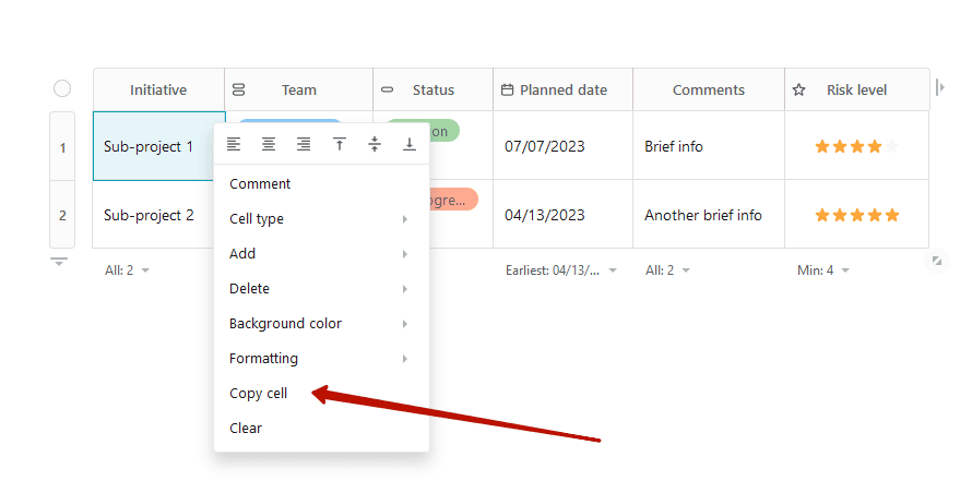 - Choose cells in a table, right-click, select Copy cells, then paste it in another table by ctrl/cmd + v.